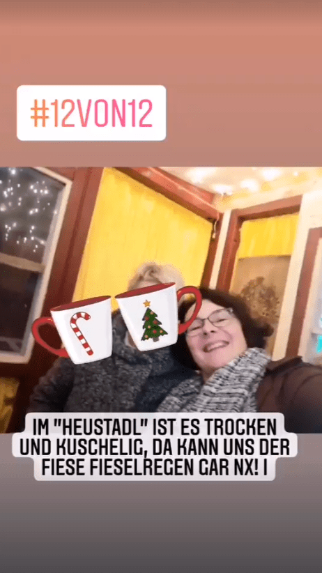 Im Heustadl ist es trocken und wir stehen geschützt. Hier plauschen wir noch einmal, bevor die Freundin ins schöne Allgäu zieht.